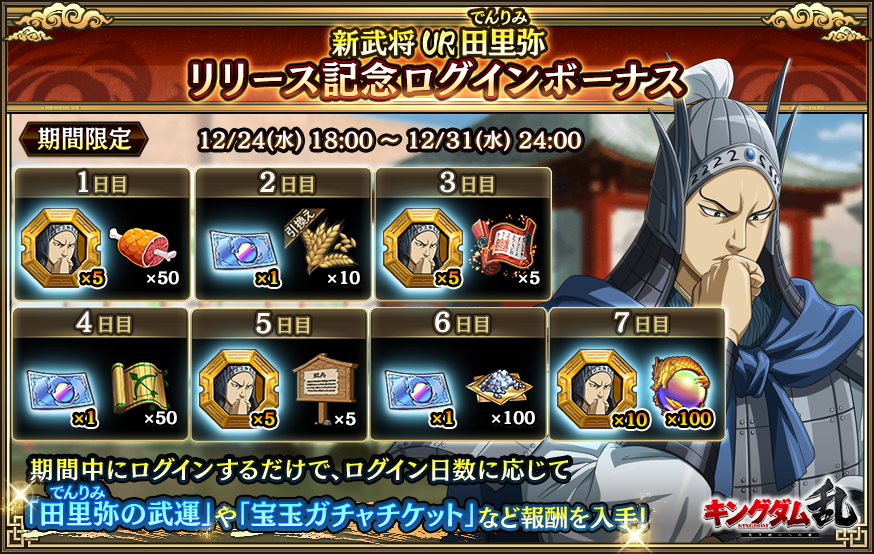 12月24日(水) メンテナンス終了後より、田里弥リリースを記念してログインボーナスや販売を開催!