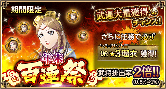 年末版は武将排出確率が通常時と比べて2倍にUP!