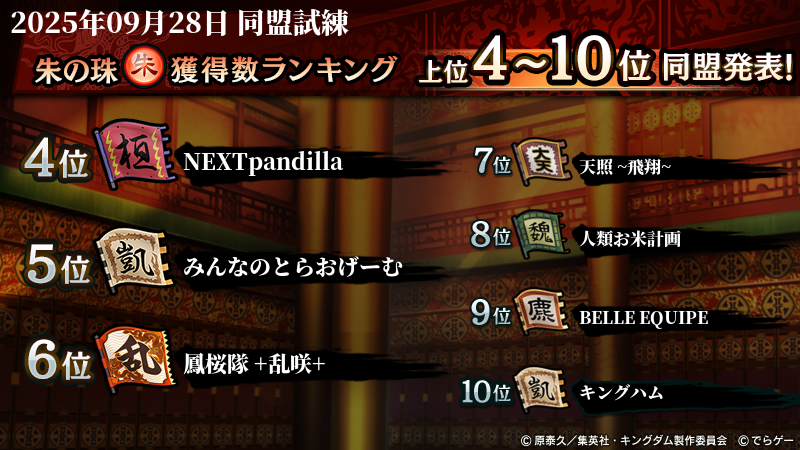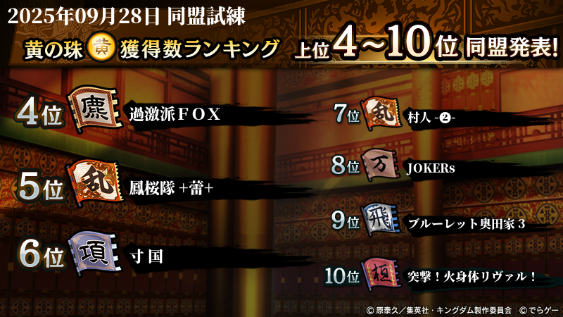 2025年9月28日(日)に開催した第206回『同盟試練』イベントの結果を発表いたします!
