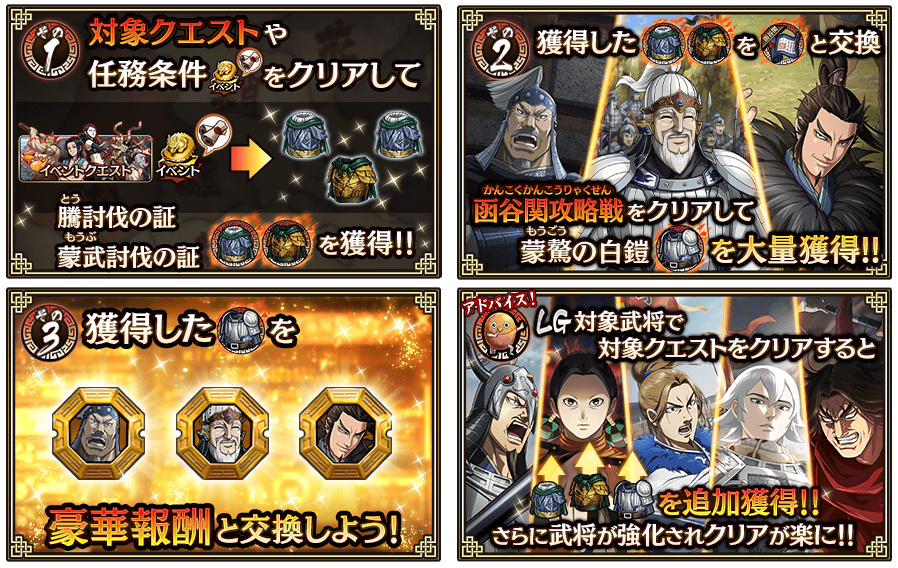 イベントクエストで交換用アイテム『蒙驁の白鎧』を集めて、豪華報酬を獲得しよう!