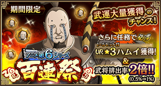 アニメ第6シリーズ百連祭は1人5セットまで利用できます!