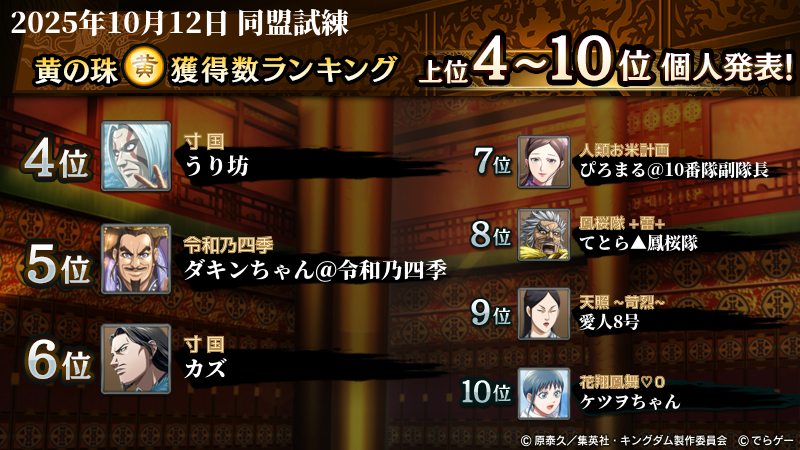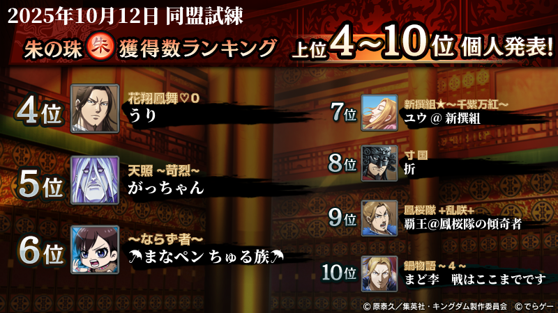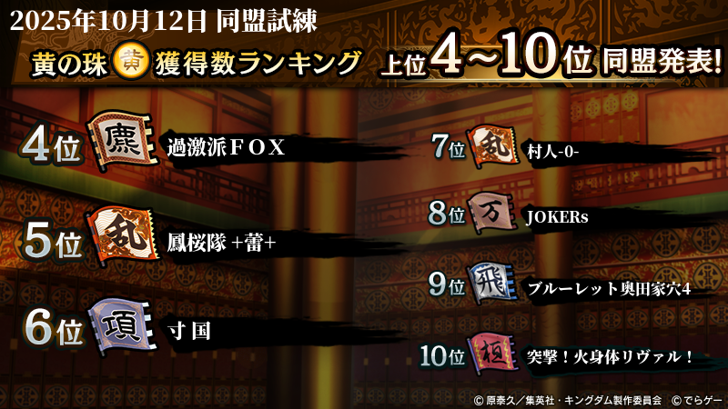 2025年10月12日(日)に開催した第207回『同盟試練』イベントの結果を発表いたします!