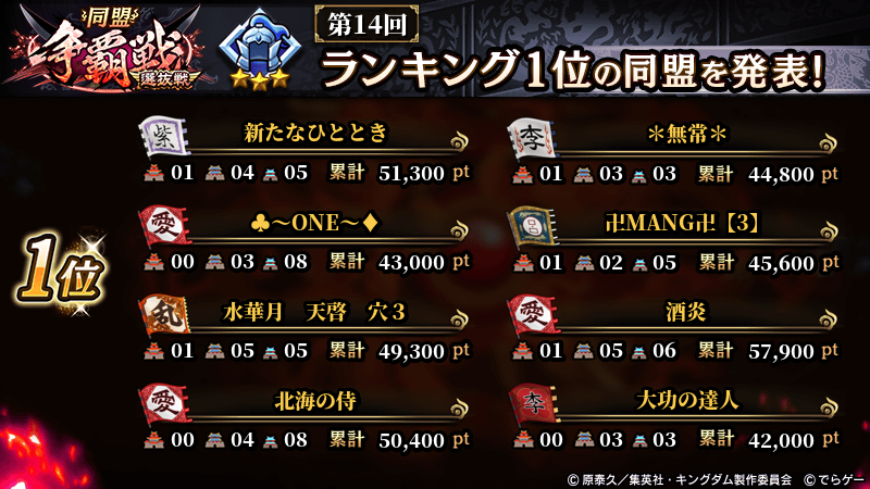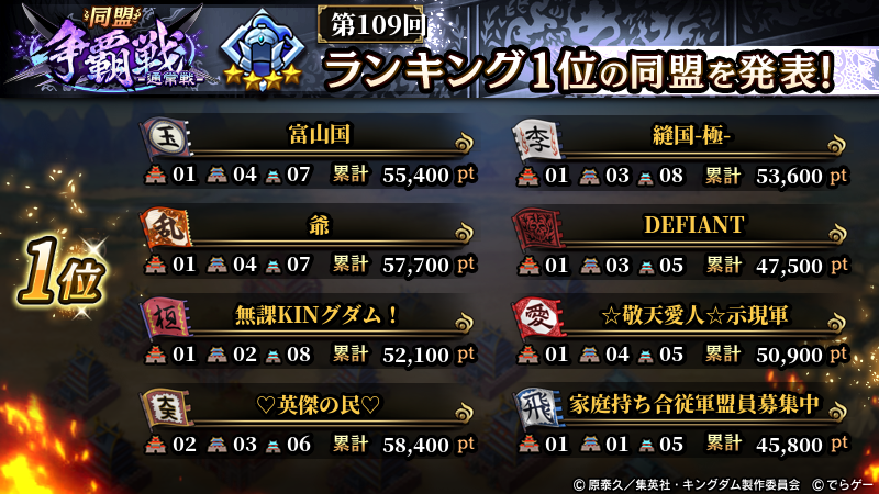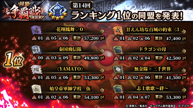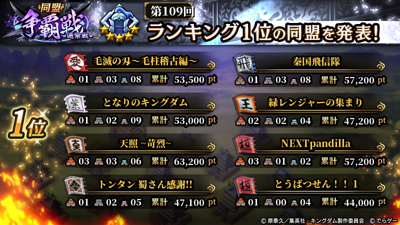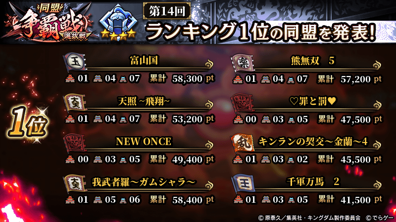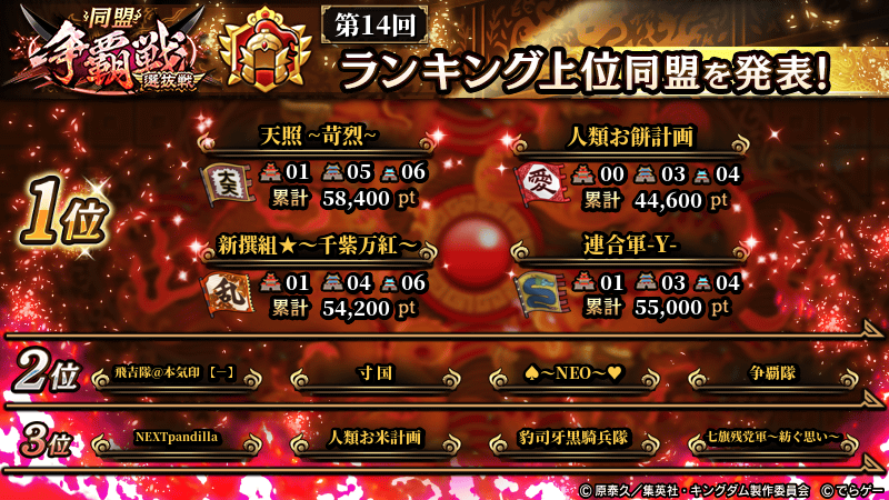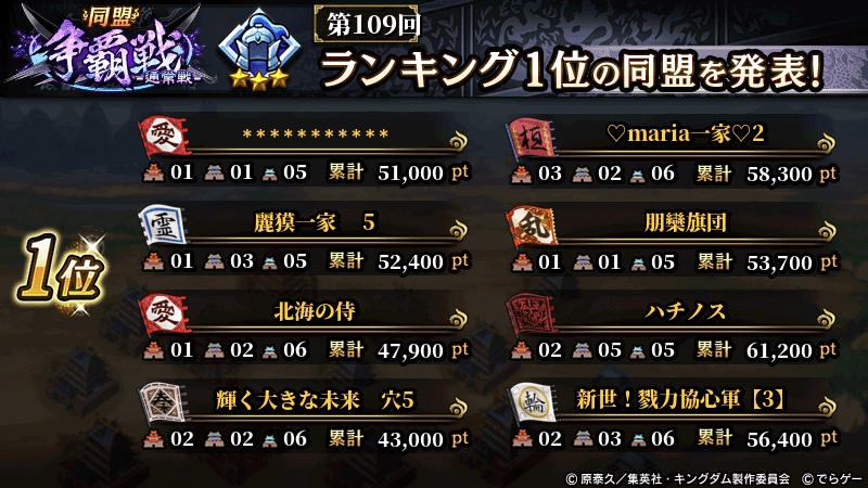 2025年10月12日(日) に終了した『同盟争覇戦』の上位グループのランキング結果を発表いたします!
