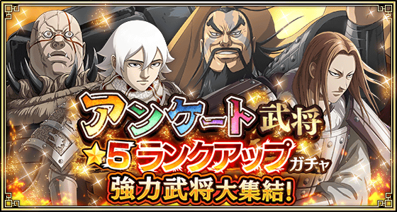第16回お客様アンケートの『一番強い武将』部門で投票数の多かった武将たちを、ランクアップガチャで獲得しよう!