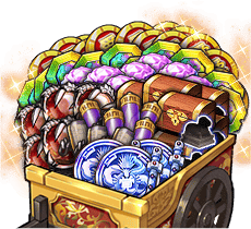 | 【実りの秋】 特別積み荷パック (中) 第2弾 | ★3武将選択宝箱【PAC】 x1 UR武運選択宝箱【PAC】 x15 宝玉ガチャチケット x50 龍剣石Lv3 x10 銀の塊Lv6 x50 兵書ランダム宝箱 x500 兵糧引換券 x100 砡装石 x100 | 1回 | 1,000円 |