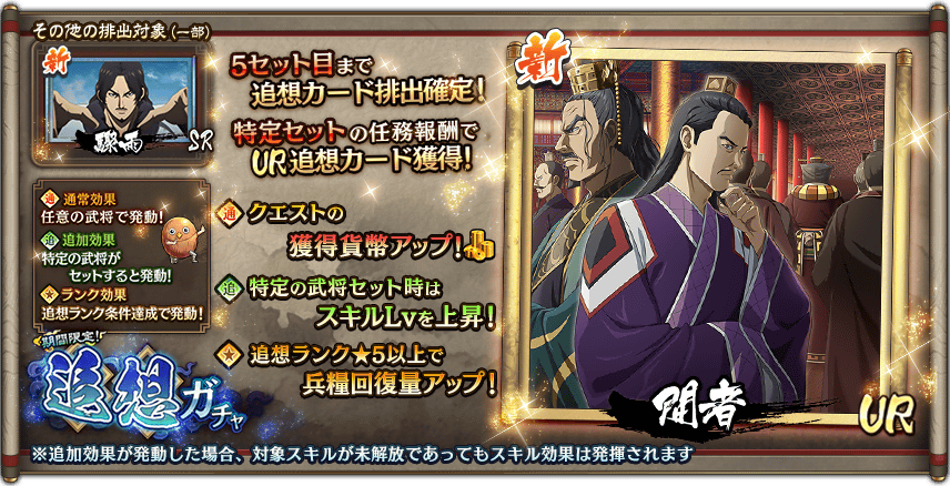 『追想ガチャ』にて新UR追想カード『間者』が登場!