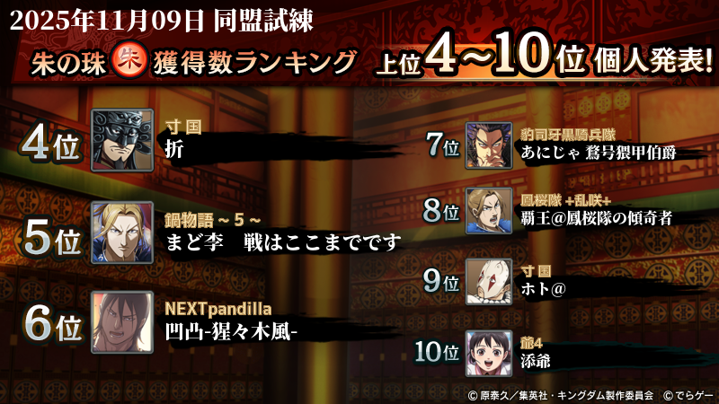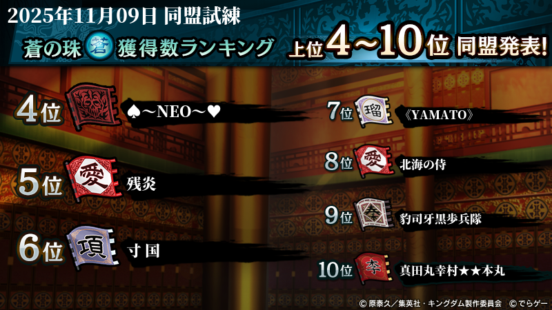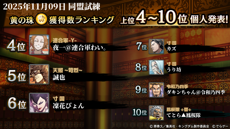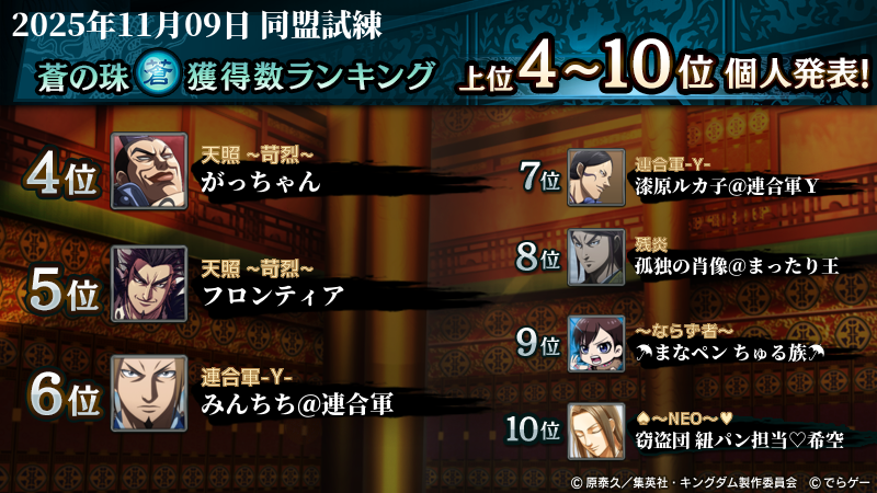 2025年11月9日(日)に開催した第209回『同盟試練』イベントの結果を発表いたします!
