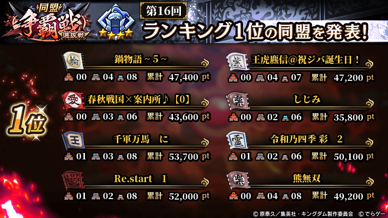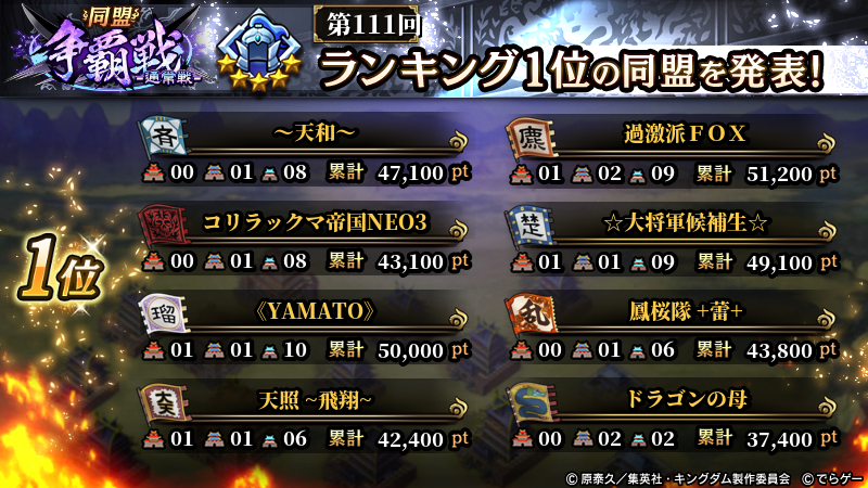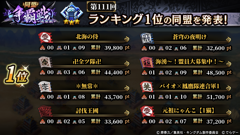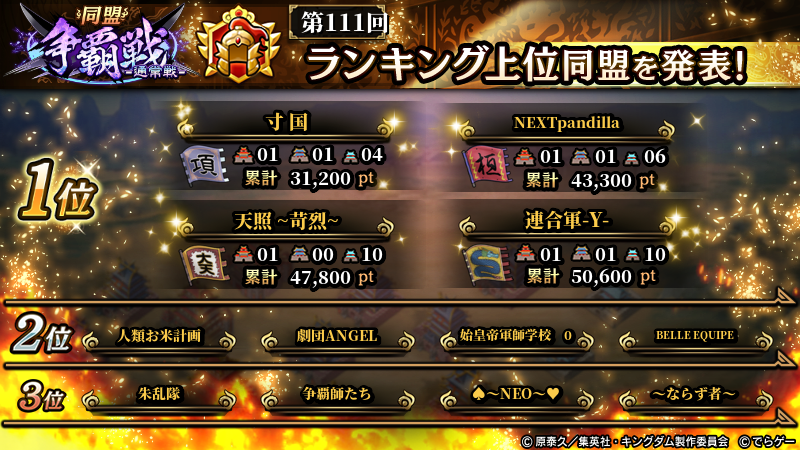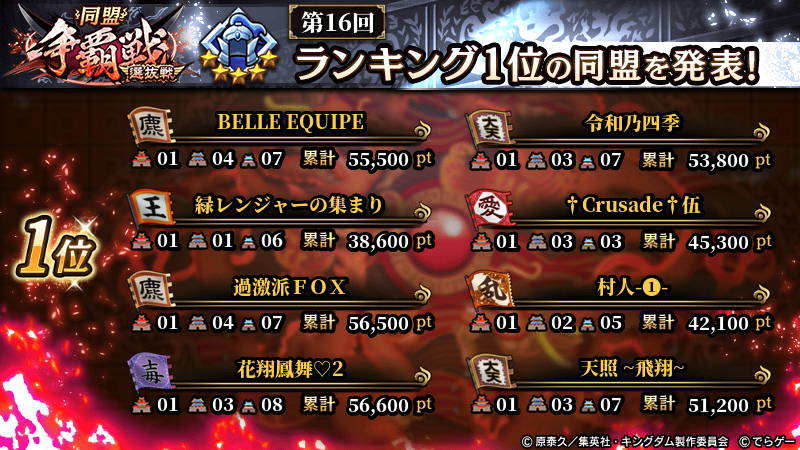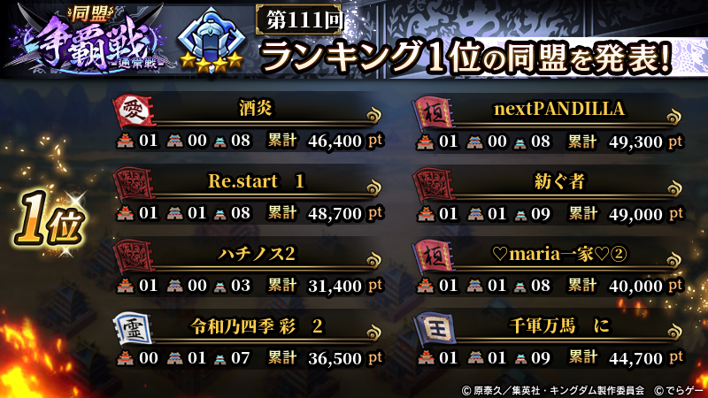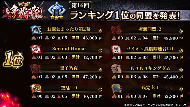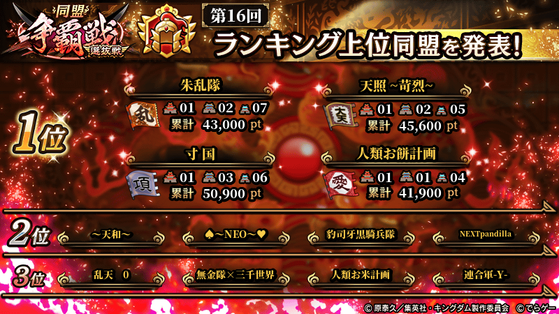 2025年11月9日(日) に終了した『同盟争覇戦』の上位グループのランキング結果を発表いたします!