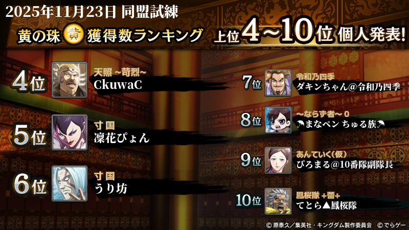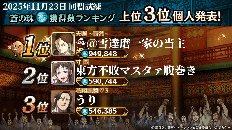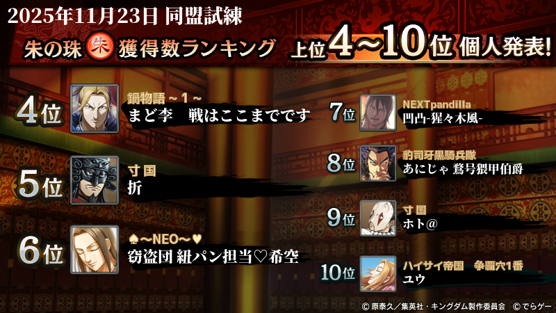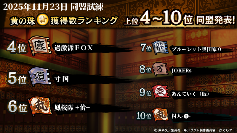 2025年11月23日(日)に開催した第210回『同盟試練』イベントの結果を発表いたします!