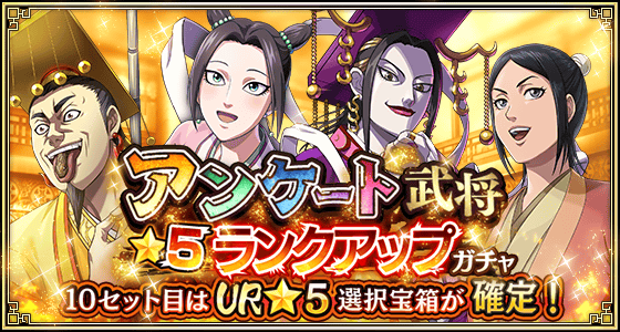 | 10セット目 | 『★5武将選択宝箱【アンケート16】』 |
