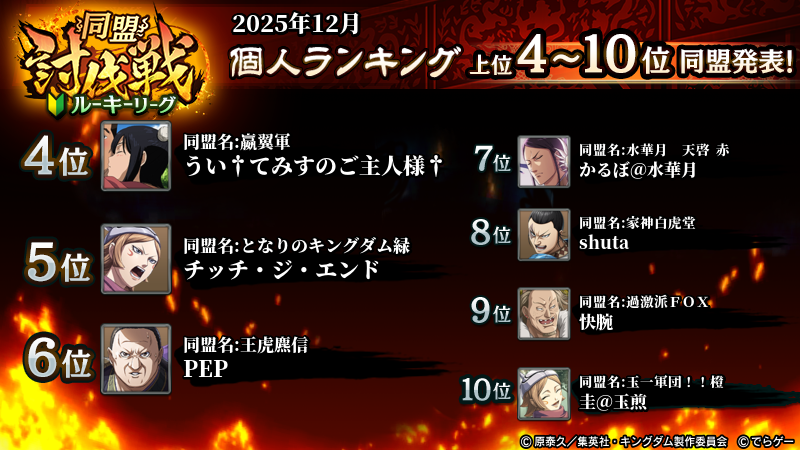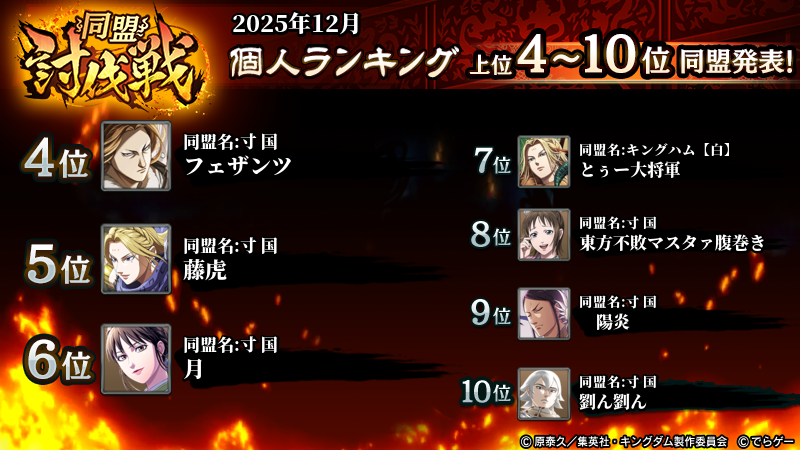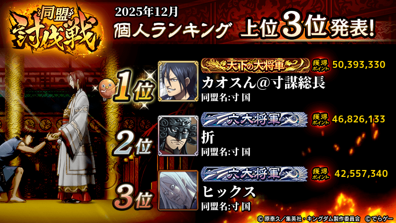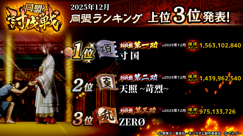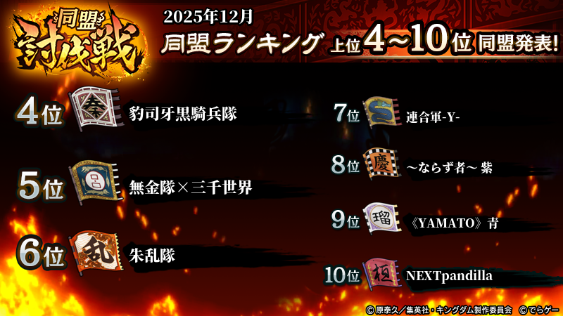2025年12月12日(金) ~ 2025年12月14日(日)に開催した第159回同盟討伐戦の結果を発表いたします!