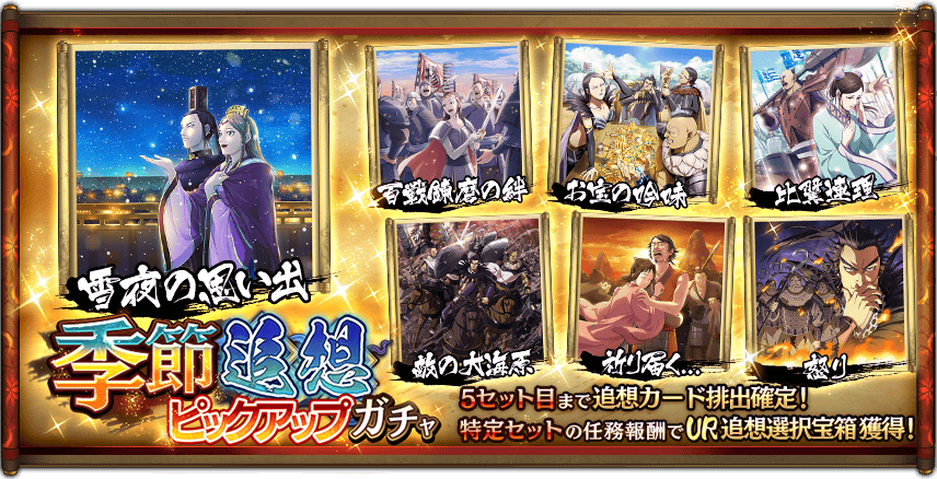 ※該当の武将や追想カードがガチャにて復刻する際は、再度告知いたします
