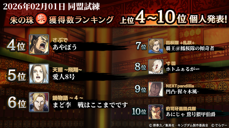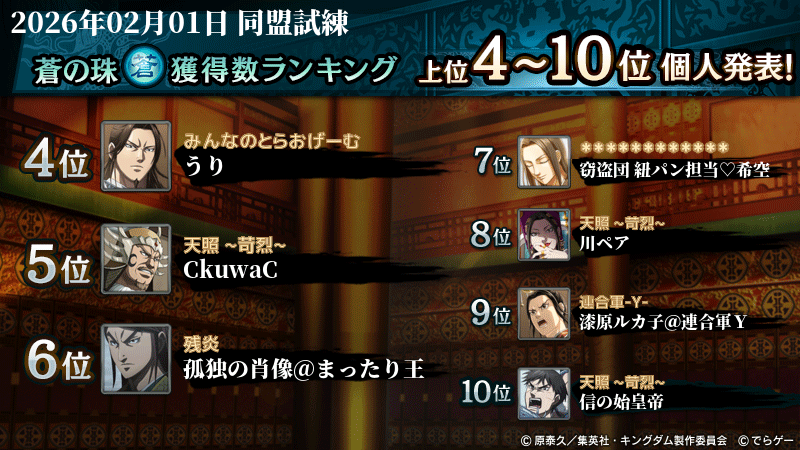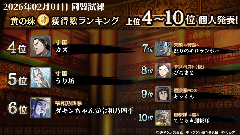 2026年2月1日(日)に開催した第215回『同盟試練』イベントの結果を発表いたします!