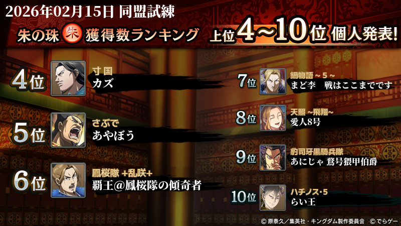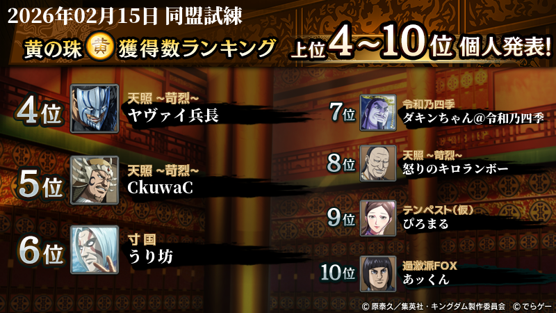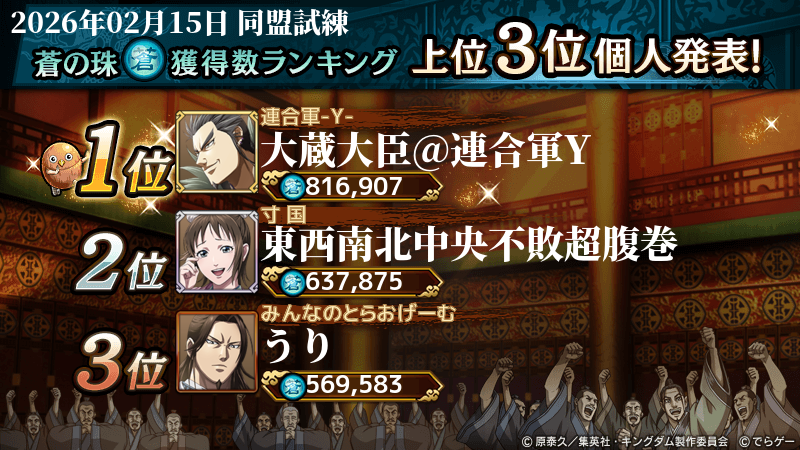 2026年2月15日(日)に開催した第216回『同盟試練』イベントの結果を発表いたします!