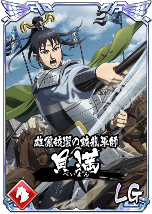 ![]() | 函谷関の戦いで勢いづく蒙武軍を食い止めた汗明の側近である貝満は、裏スキルで攻城戦スキルと2つの全軍強化スキルを習得し、自身が戦場に出陣しなくても貢献できます。 |