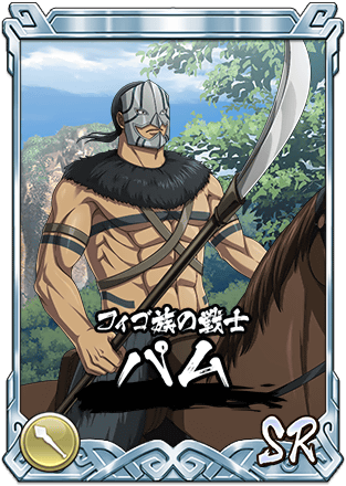 | フィゴ族の王・ダントに従う、山の民の戦士であるパムは、一定確率で敵に『混乱』『眠り』を付与し、味方山の民部隊の浄化と体力回復も兼ね備えたダメージ武技が強力な武将です。