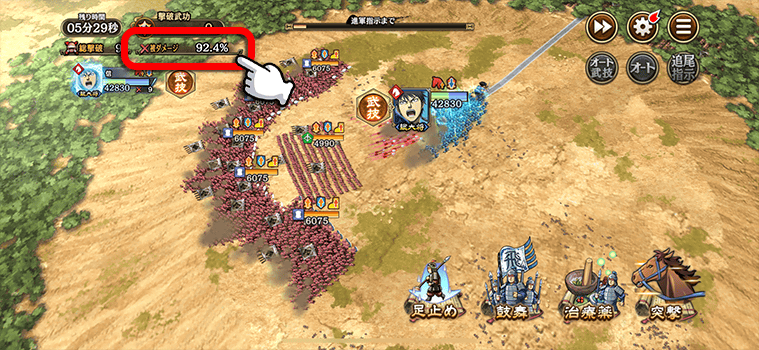 ・UR白起のスキル『やれ』の自身が総大将時効果にて、敵全部隊の『兵士体力』のみ低下している不具合