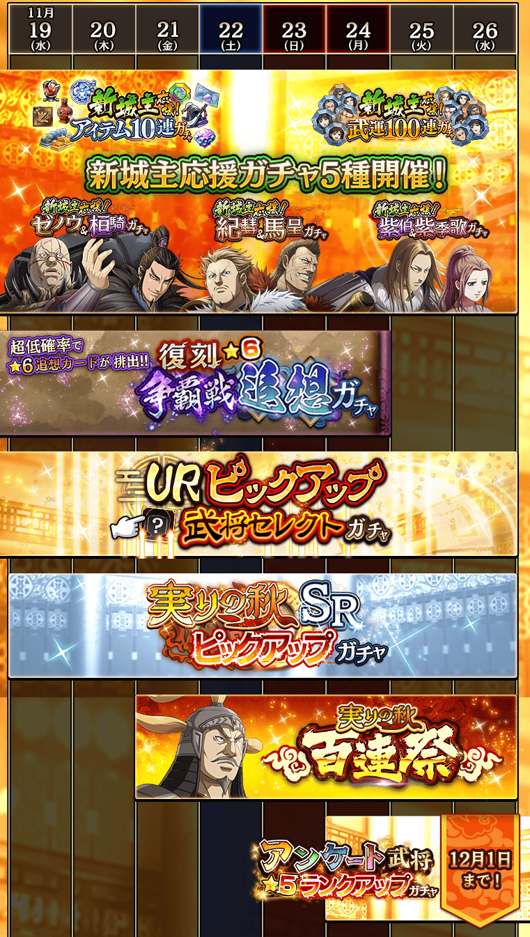 ※該当の武将や追想カードがガチャにて復刻する際は、再度告知いたします
