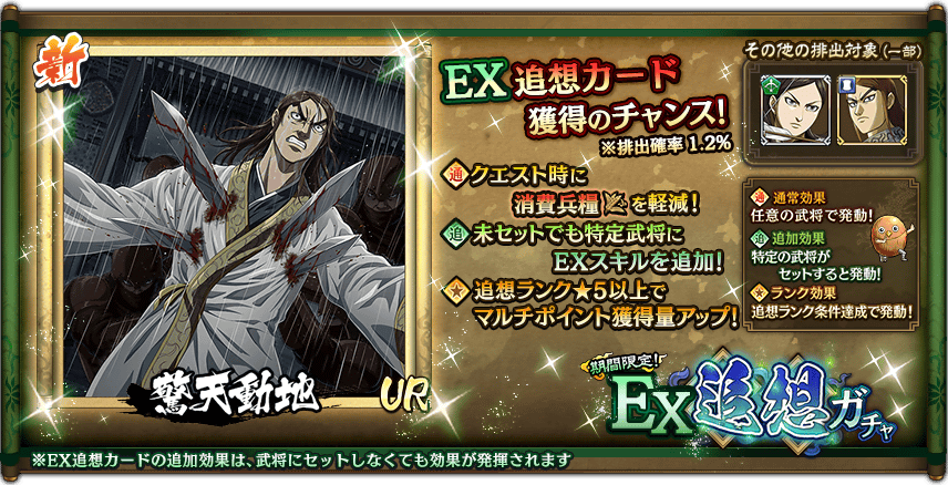 獲得することで対象武将に争覇スキルが解放される『争覇スキル追加追想カード』が排出されます!