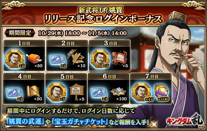 10月29日(水) メンテナンス終了後より、姚賈リリースを記念してログインボーナスや販売を開催!