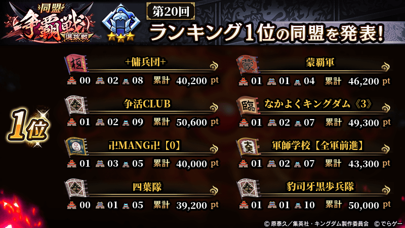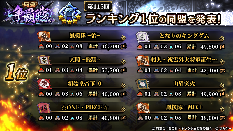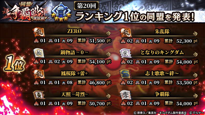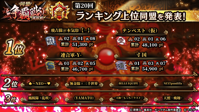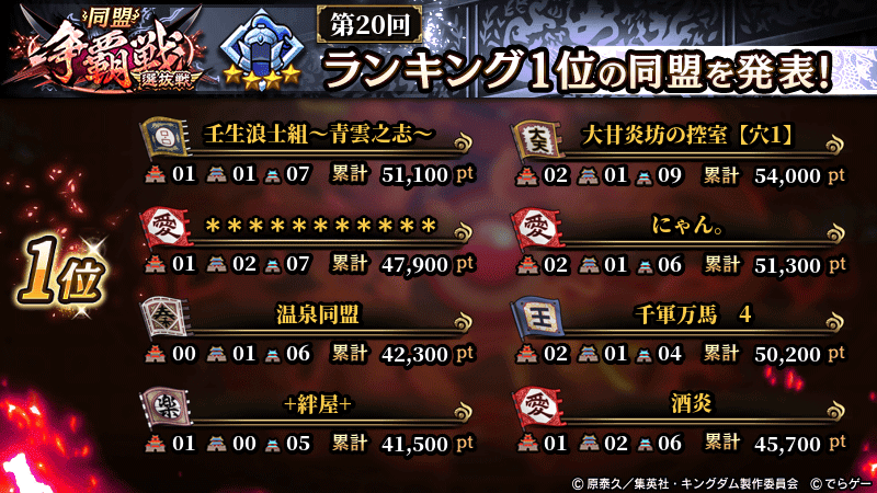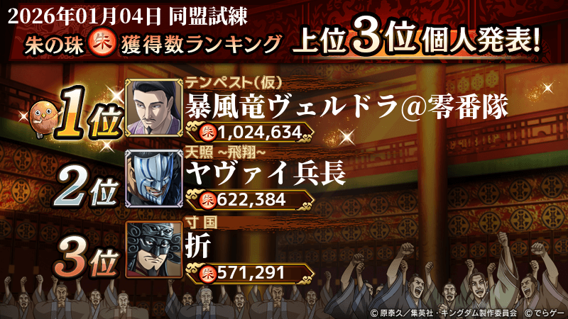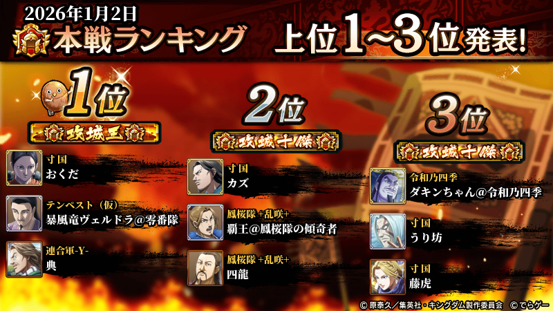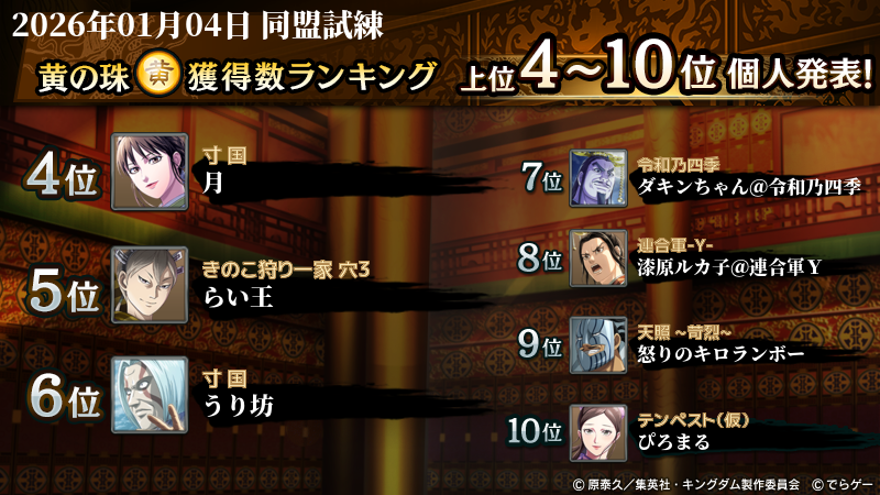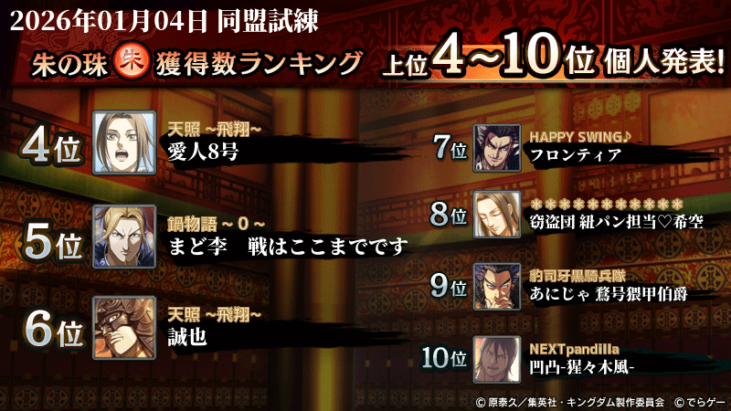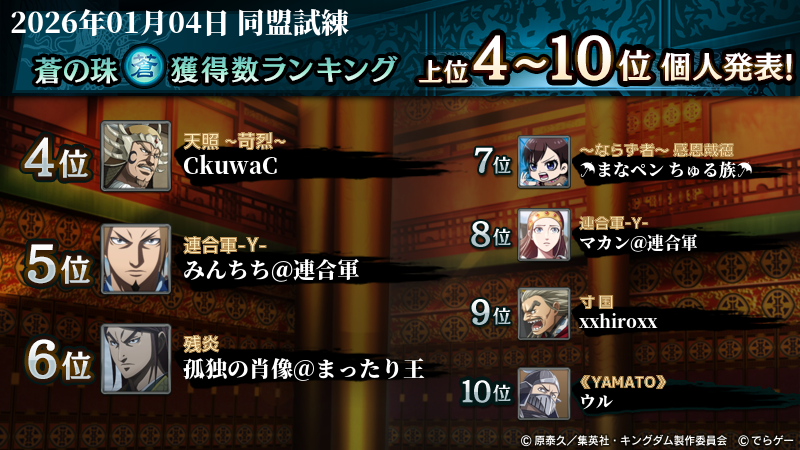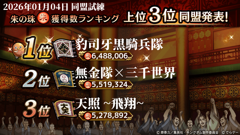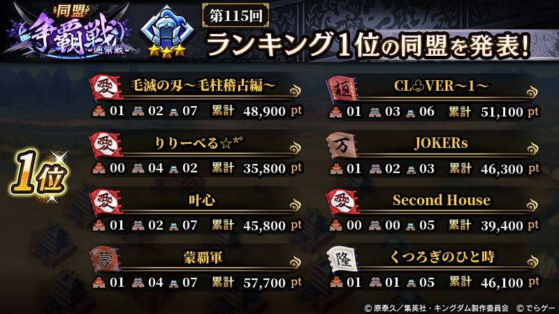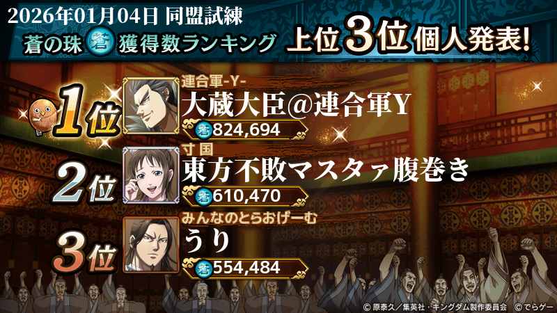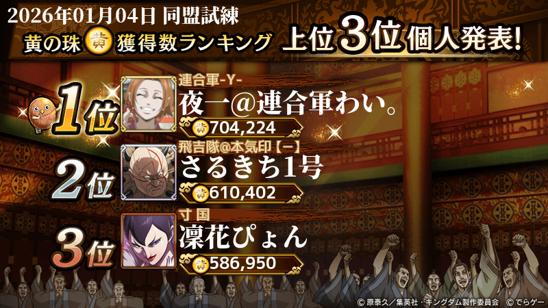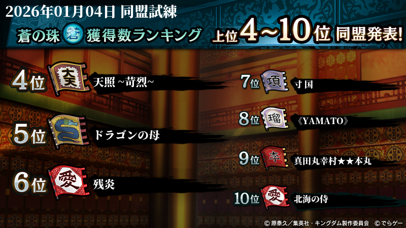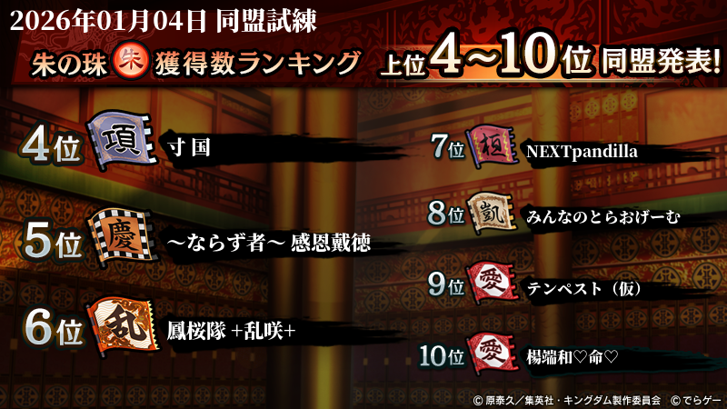 2026年1月4日(日) に終了した『同盟争覇戦』の上位グループのランキング結果を発表いたします!