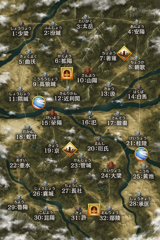![]() | 大軍現る 【通常効果】クエスト消費兵糧減(中) クエストで消費する兵糧が低下する。