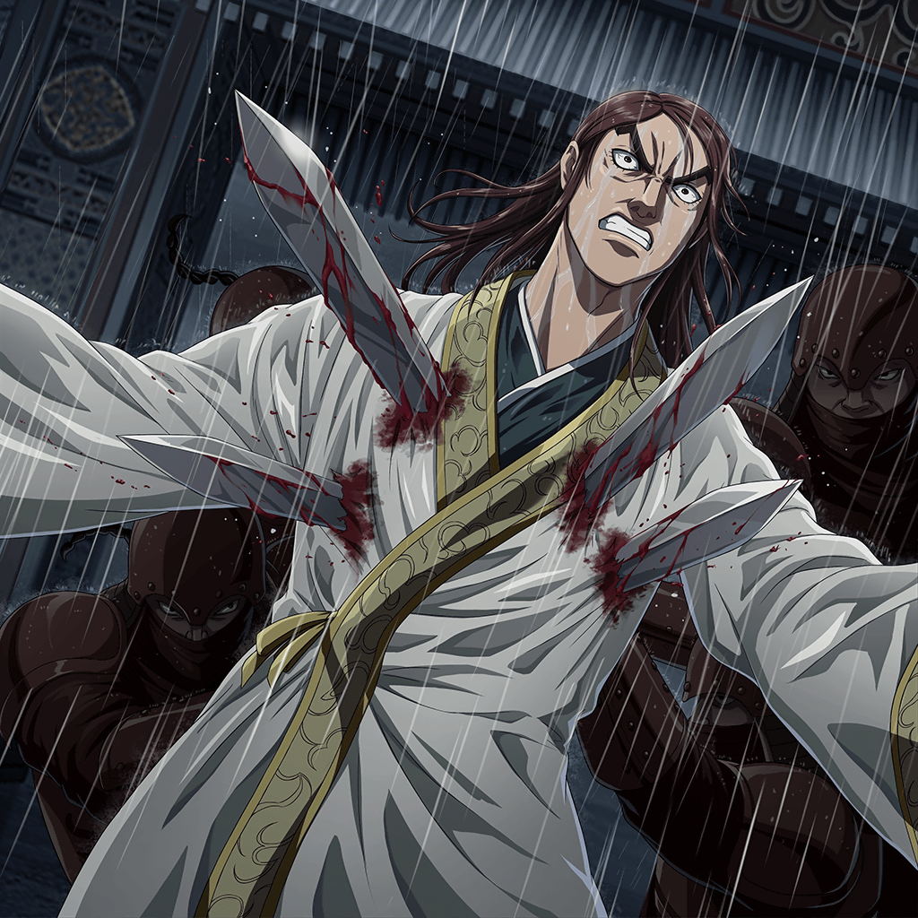 (LG覚醒値3)戦場に味方秦の六大将軍部隊がいる際に、自部隊が敵部隊から受ける通常攻撃ダメージを軽減し、3秒毎に自部隊の部隊体力が回復する。