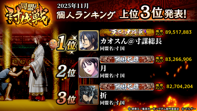 ・各ランキングは、『同盟』『同盟内』『個人』の3つの単位で順位が集計されます。