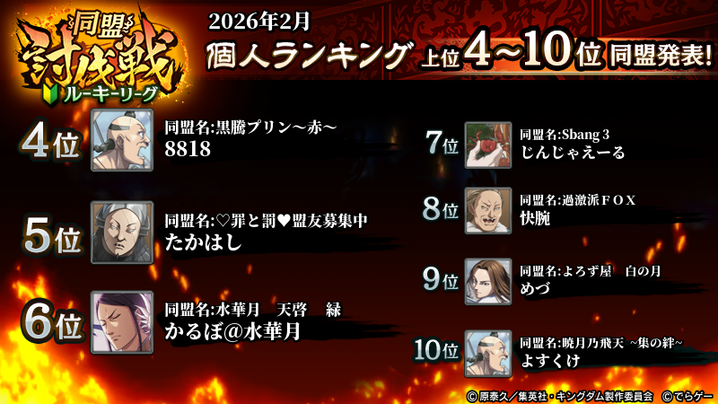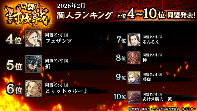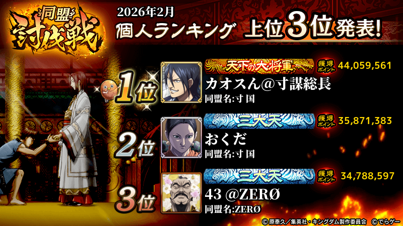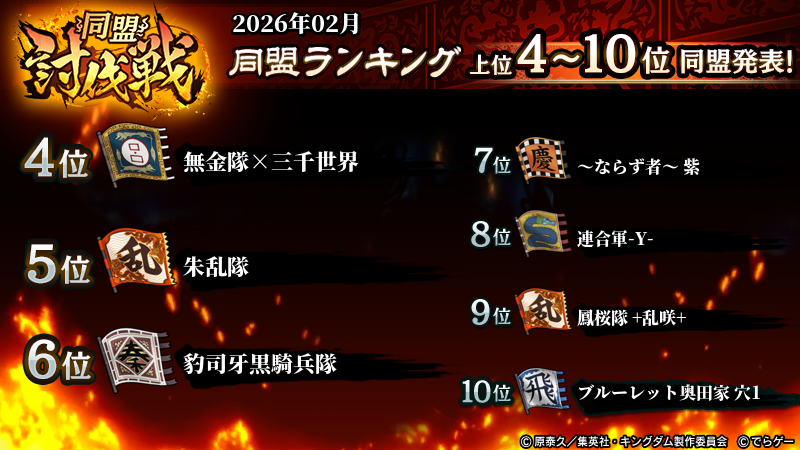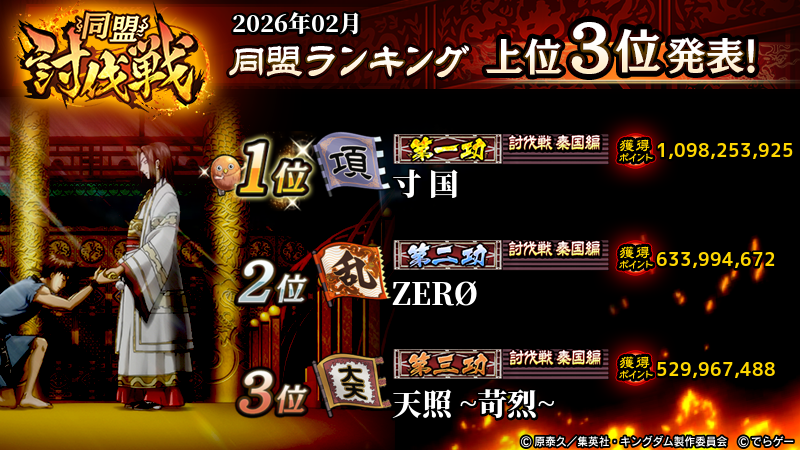 2026年02月20日(金) ~ 2026年02月22日(日)に開催した第164回同盟討伐戦の結果を発表いたします!