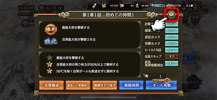 ⇒敵部隊を撃破すると『酒のしずく』『宝玉』『万能武運』などの報酬を獲得できます。
