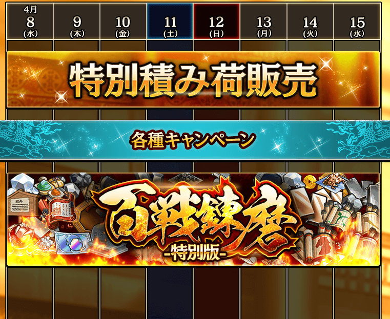 4月13日(月) 5:00までに、同盟討伐戦画面内の『報酬受取』よりお受け取りください。